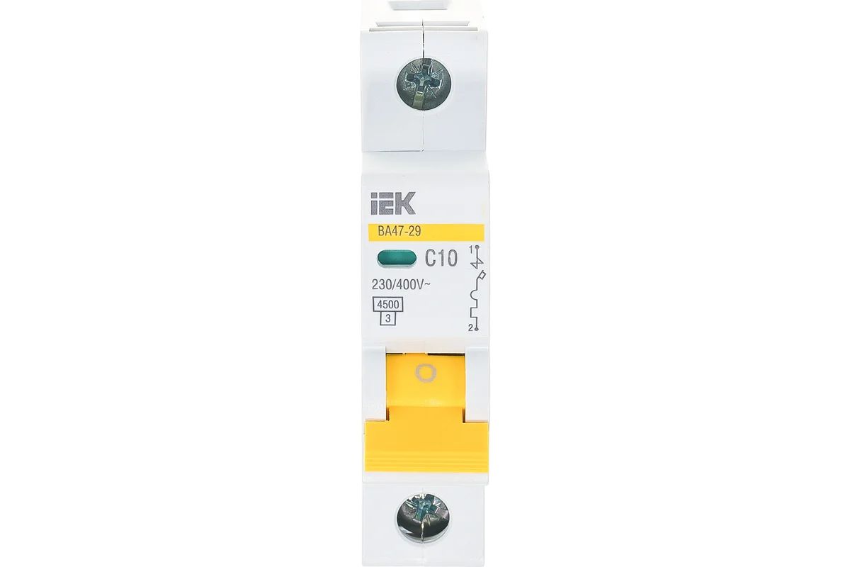 Читать все статьиАвтоматический выключатель 1P IEK С10А 4,5кА ВА47-29