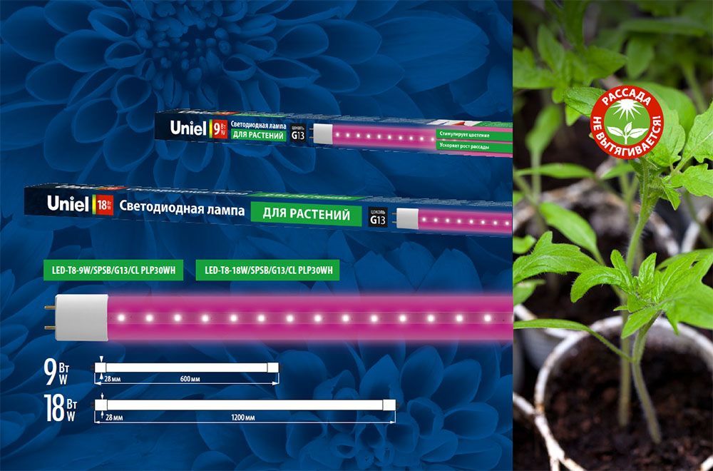 Читать все статьиФитолампа Uniel T8G13 9W для растений