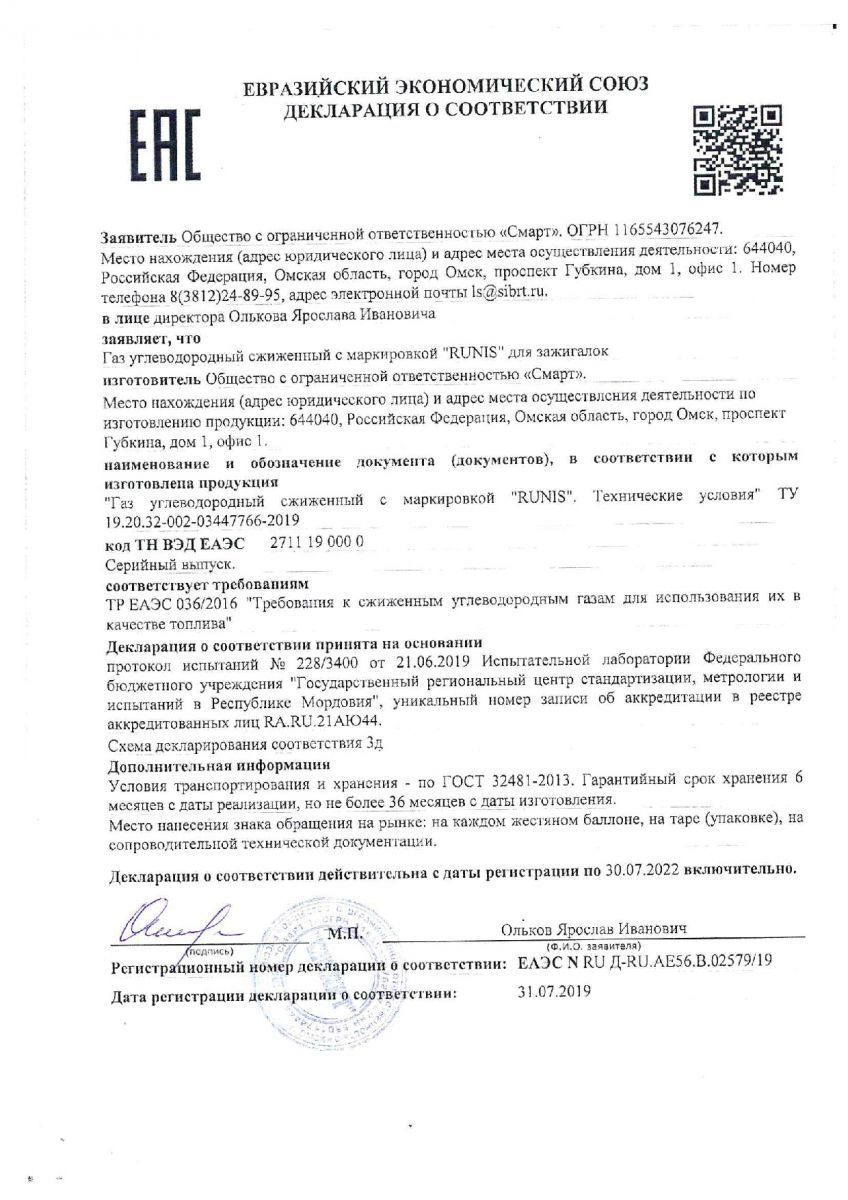 RUNIS Газ для зажигалок, метал. баллон, 140мл, белый, с насадками, арт.1-007