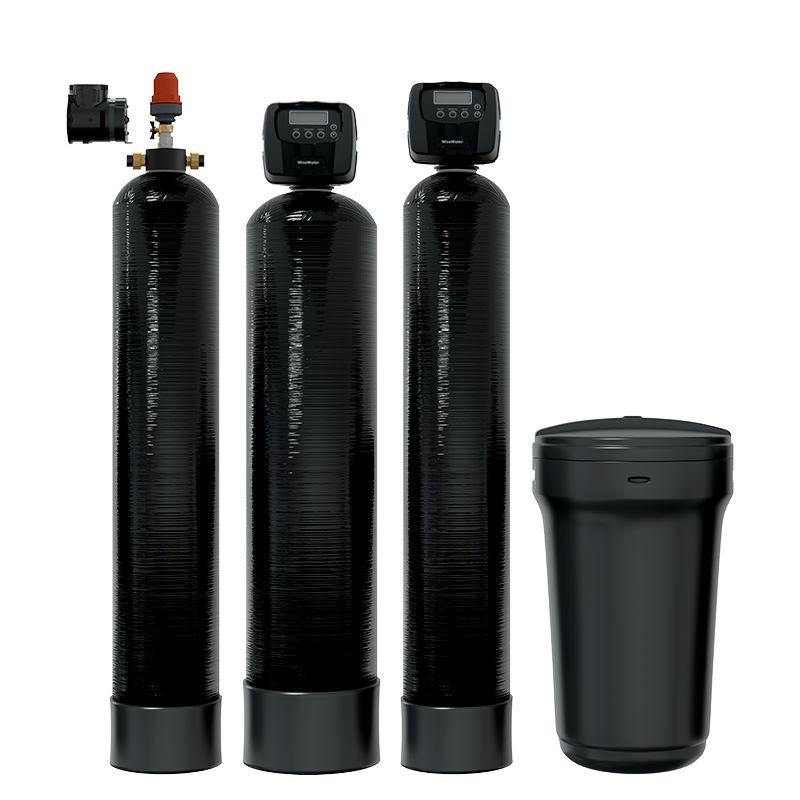 В состав оборудования входит: дисковый фильтр, аэрационная колонна со встречными турбулентными потоками, безмасляный малошумный воздушный компрессор с регулятором расхода воздуха, автоматическая система управления работой компрессора, автоматический безреагентный фильтр-обезжелезиватель, автоматический фильтр-умягчитель с баком для соли, регулятор жёсткости воды, манометры, термочехлы, все необходимые фильтрующие загрузки. Комплексная система WiseWater VK работает на эксклюзивных клапанах управления Clack EW (производство Clack Corporation, США). Благодаря использованию современных технологий и материалов, а также безупречному качеству сборки, эти полностью русифицированные блоки управления являются гарантом безупречной работы фильтров. Корпуса Canature, используемые в оборудовании WiseWater, изготовлены из пищевого пластика. Система снабжается неопреновыми термочехлами, которые предназначены для теплоизоляции и предотвращения образования конденсата на поверхности корпусов фильтров. Система изготавливается на собственных производственных мощностях. Состав системы: Аэрационная колонна применяется для насыщения обрабатываемой воды кислородом с помощью воздушного компрессора; предварительного окисления железа и органических соединений; удаления агрессивной углекислоты и сероводорода (удаление неприятного запаха). Интенсивная аэрация воды препятствует развитию микроорганизмов на загрузке фильтров. Использование напорной аэрационной колонны позволяет избежать потерь давления при прохождении воды через аэратор. Фильтр-обезжелезиватель удаляет растворённое и нерастворённое в воде железо с помощью процесса окисления, задерживая выпавшее в осадок железо в толще наполнителя, а также снижает мутность воды. В фильтре используется загрузка WiseWater IronX, которая является катализатором реакции окисления соединений железа растворённым в воде кислородом. Регенерация фильтра не требует использования реагентных материалов и производится в автоматическом режиме с помощью электронного управляющего клапана Clack Corporation (USA) по сигналу таймера. Фильтр-умягчитель с катионообменной смолой предназначен для снижения содержания в воде ионов кальция и магния до рекомендуемого уровня 1,5-2,5 мг-экв/л. Регенерация фильтра производится в автоматическом режиме с помощью электронного управляющего клапана Clack Corporation (USA) по сигналу таймера или встроенного счётчика. Корпуса фильтров и соляных фидеров, а также все контактирующие с водой элементы управления изготовлены из полимерных материалов пищевого класса. Для приготовления регенерационного раствора рекомендуется использовать гранулированную или таблетированную поваренную соль.