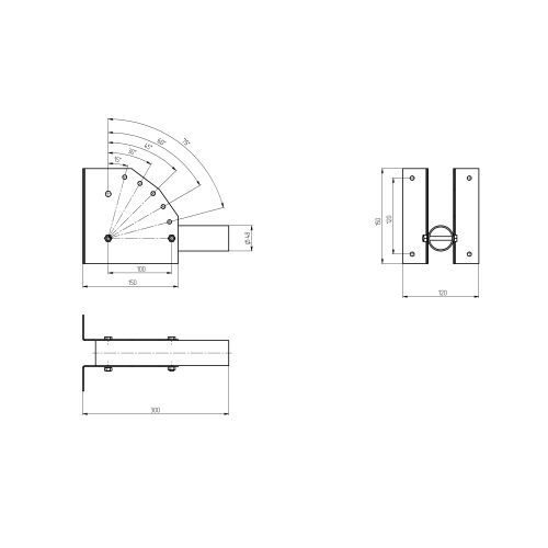 Кронштейн с переменным углом (шаг 15), для уличного (консольного) светильника, крепление болтами или бандажной лентой