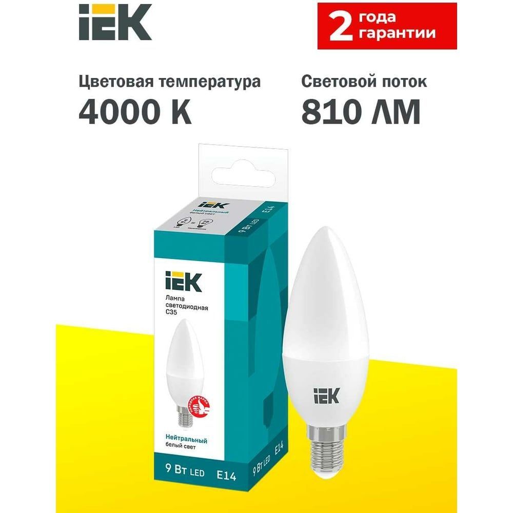 Читать все статьиЛампа 9Вт C35 свеча 4000K E14 230В IEK