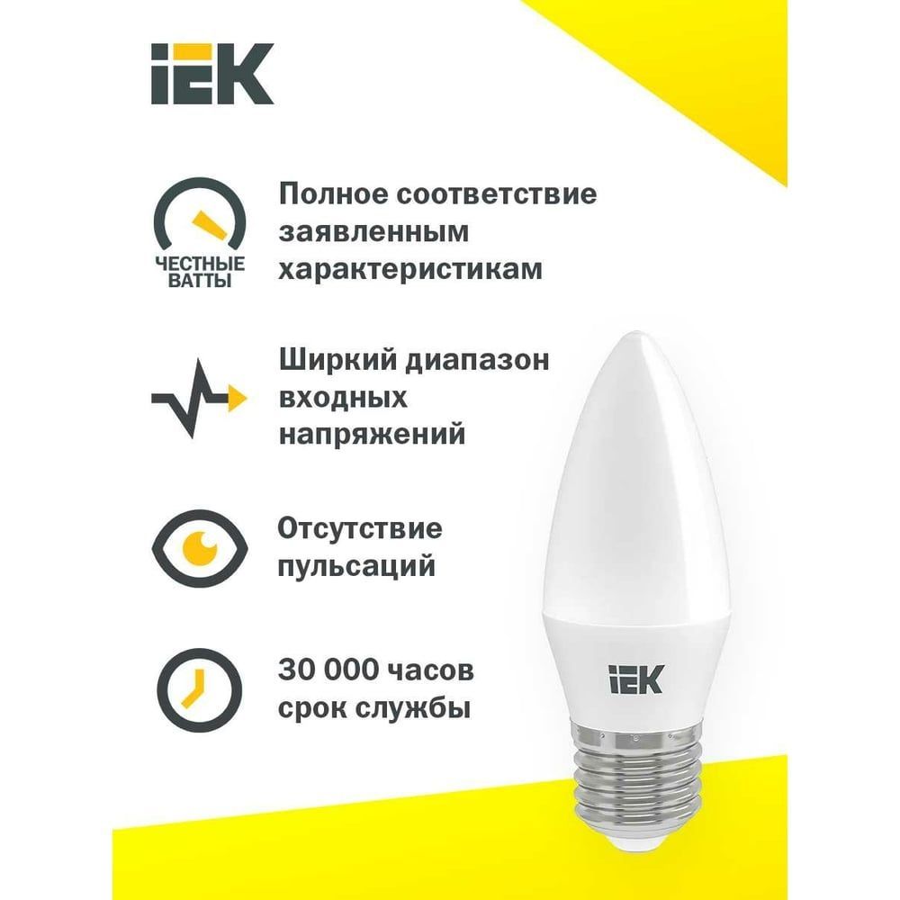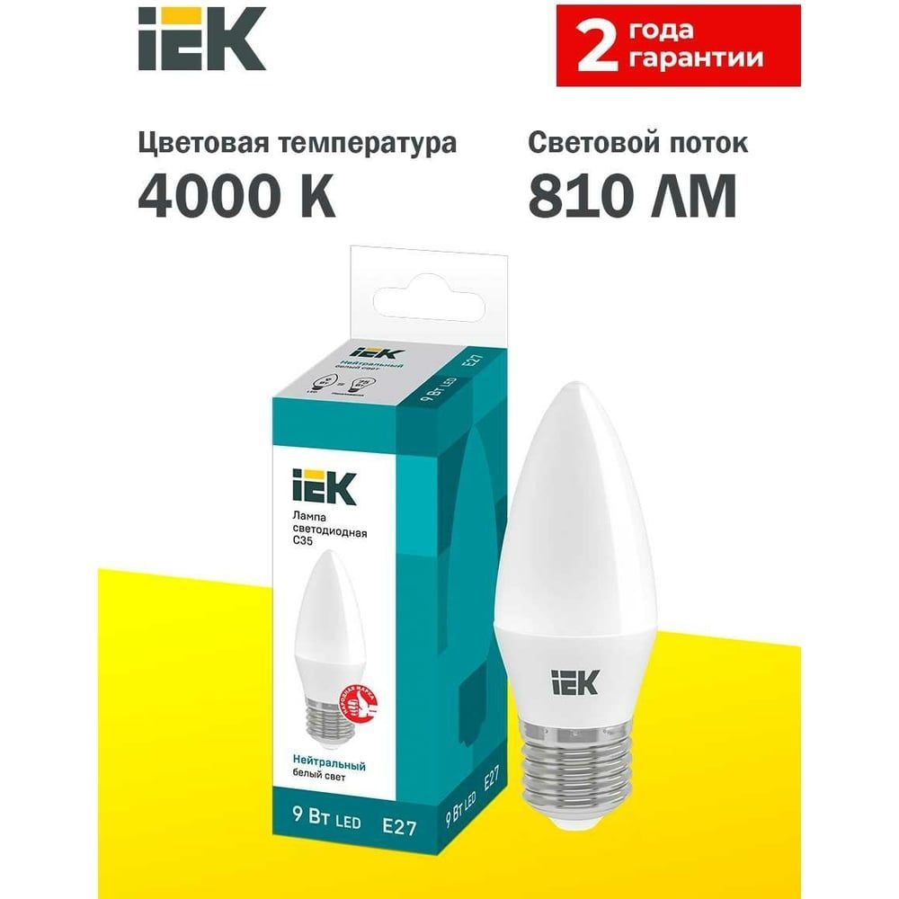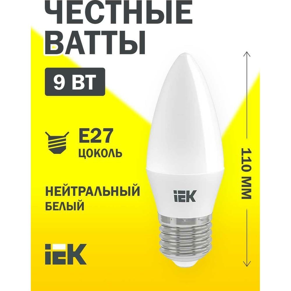 Читать все статьиЛампа 9Вт C35 свеча 4000K E27 230В IEK