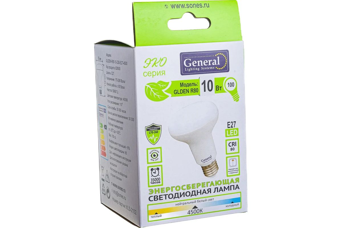 Читать все статьиЛампа General LED R80 E27 10W 4500K