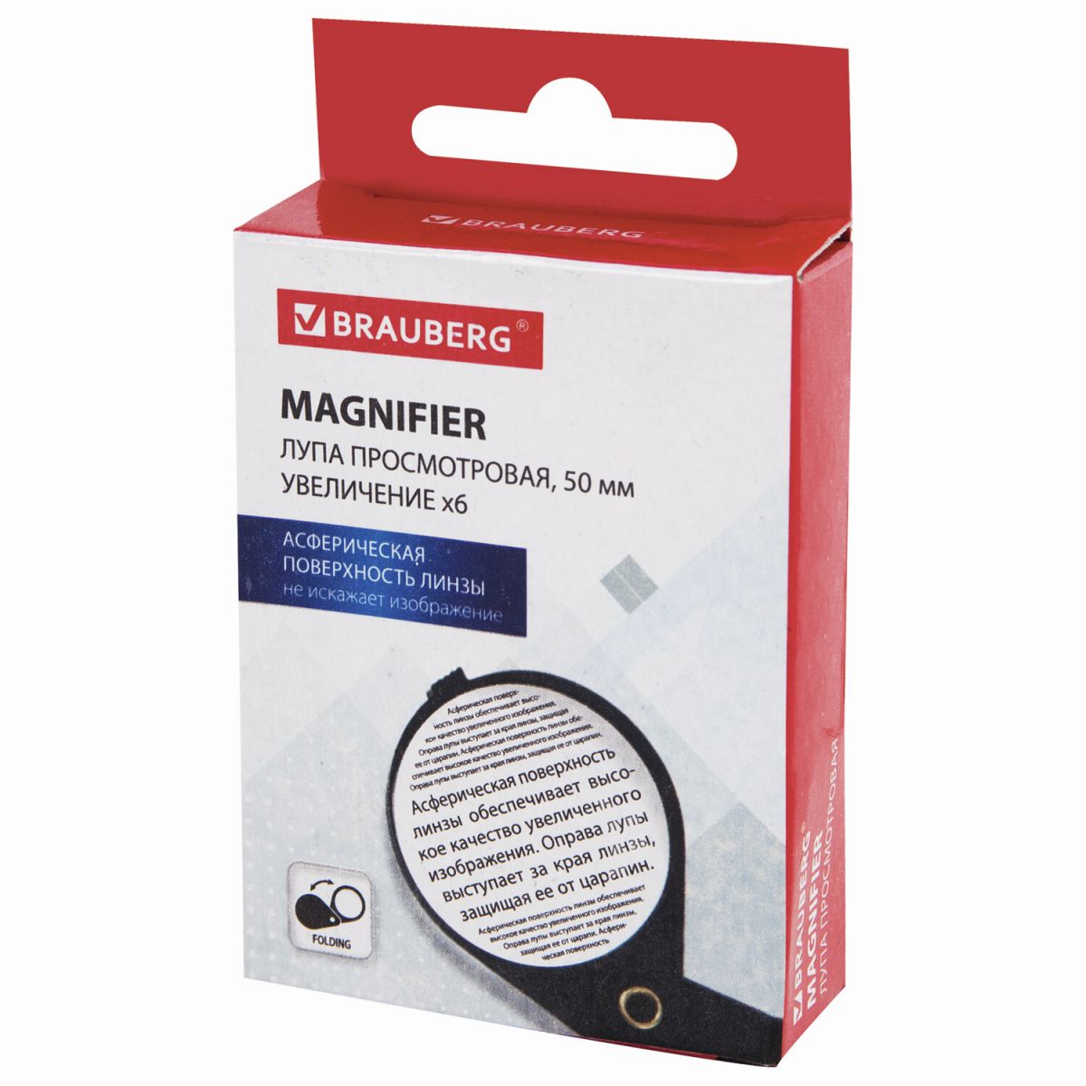 Лупа просмотровая BRAUBERG, складная, диаметр 50 мм, увеличение 6, 451798