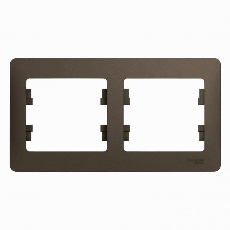 Рамка Schneider Electric Glossa (цвет шоколад) двухместная. - Устанавливается в горизонтальном положении. - Выполнена из материала PС+ASA, стойкого к УФ-излучению и появлению царапин. - Позволяет гармонично вписать электроустановочное изделие в интерьер помещения.