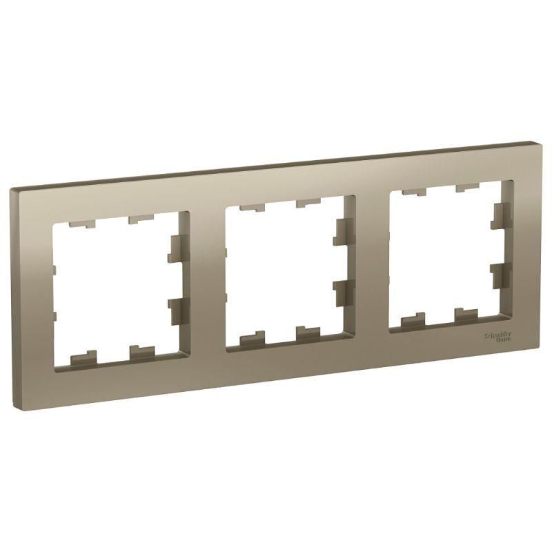Рамка Schneider Electric AtlasDesign (цвет шампань) трёхместная. - Устанавливается в вертикальном и горизонтальном положениях. - Лицевые детали из качественного ABS-пластика, устойчивого к царапинам и УФ-излучению. - Позволяет гармонично вписать электроустановочное изделие в интерьер помещения.