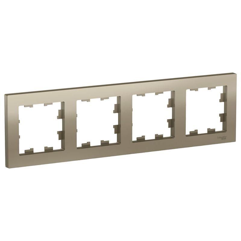 Рамка Schneider Electric AtlasDesign (цвет шампань) четырёхместная. - Устанавливается в вертикальном и горизонтальном положениях. - Лицевые детали из качественного ABS-пластика, устойчивого к царапинам и УФ-излучению. - Позволяет гармонично вписать электроустановочное изделие в интерьер помещения.