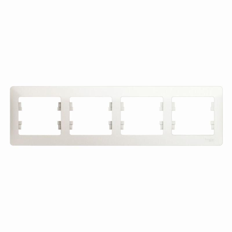 Рамка Glossa (цвет перламутр) четырёхместная. - Устанавливается в горизонтальном положении. - Выполнена из материала PС+ASA, стойкого к УФ-излучению и появлению царапин. - Позволяет гармонично вписать электроустановочное изделие в интерьер помещения.