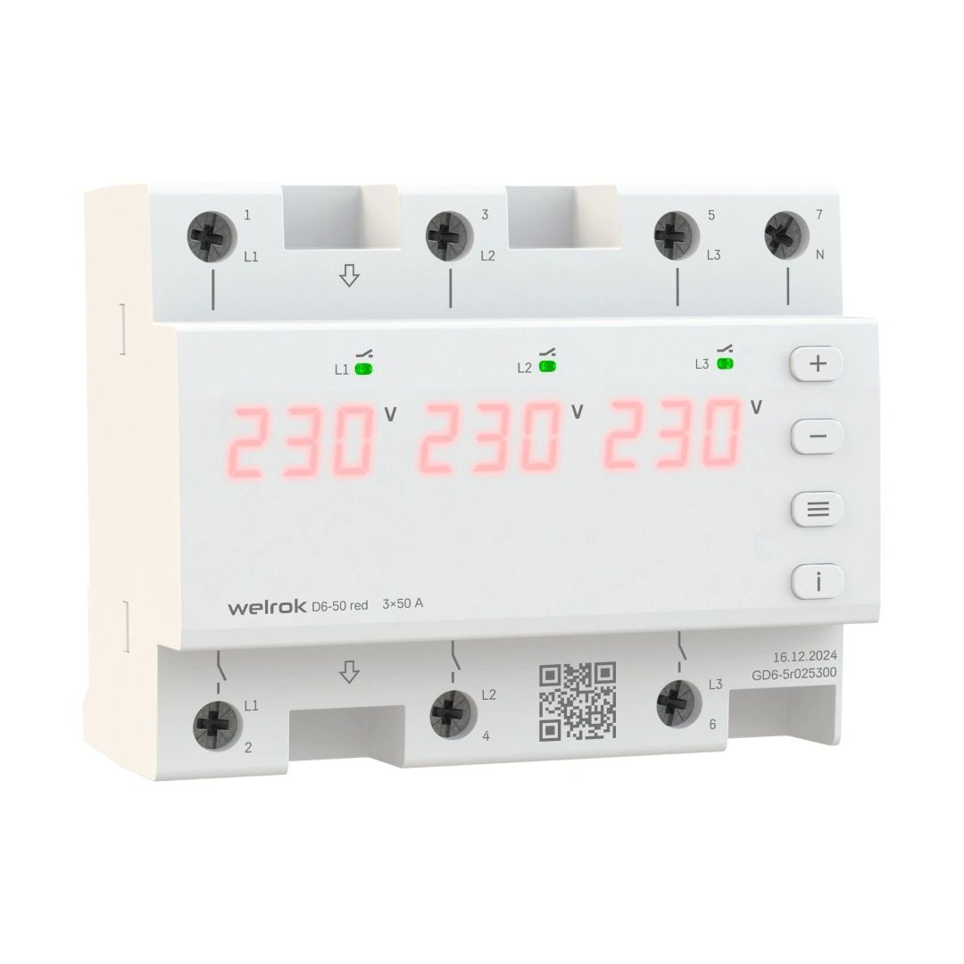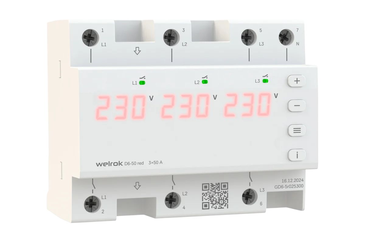 Читать все статьиРеле напряжения Welrok D6-50 RED трехфазное Welrok