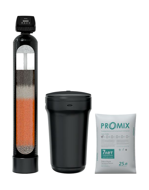 ProMix типа А разработан для очистки воды из неглубоких скважин и колодцев. Материал удаляет железо, марганец, органику, аммоний и снижает жёсткость. Загрузка эффективна при показателе перманганатной окисляемости не более 10 мгО2/л.
