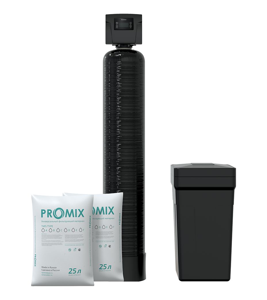 Система умягчения/обезжелезивания предназначена для комплексной очистки водопроводной и артезианской воды с одновременным умягчением, удалением железа, марганца, аммония и органических соединений природного происхождения. Применяется для защиты систем водоснабжения, водонагревательных приборов (в том числе стиральных и посудомоечных машин, водонагревателей и электрочайников) и уменьшения расхода моющих средств. В системе в качестве загрузки используется многофункциональный фильтрующий материал ProMix. Регенерация фильтра производится в автоматическом режиме с помощью электронного управляющего клапана Canature BNT по сигналу встроенного таймера или по сигналу счётчика. Для приготовления регенерационного раствора рекомендуется использовать таблетированную поваренную соль, производимую специально для этой цели. Корпуса Canature, используемые в оборудовании, изготовлены из пищевого пластика.
