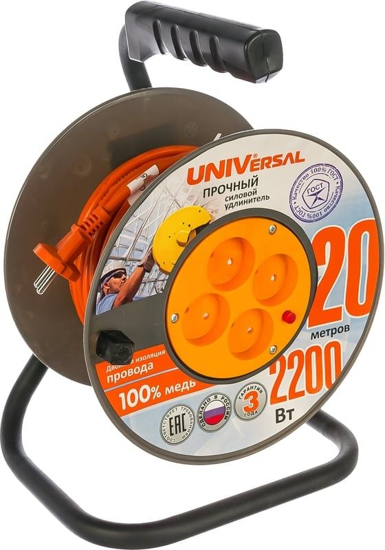 Читать все статьиУдлинитель на катушке 20 м ПВС 2х1 4 гнезда UNIVersal