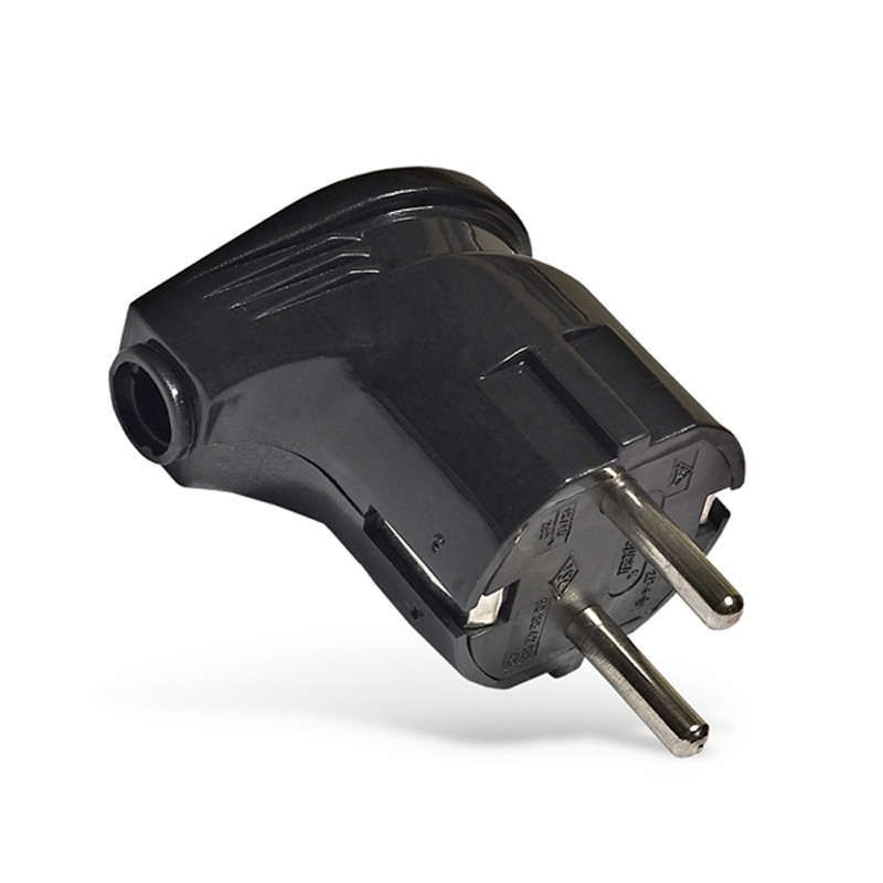 Вилка электрич. с заземл. угл. черн. 16А 250В (еврослот) UNIVersal А0105 – электроустановочный аксессуар, устройство подключения к сети бытовых электроприборов. Тип "евро", с заземлением. Разборный. Изготовлен из пластмассы, устойчивой к оплавлению. Ударопрочный, устойчив к износу. Поставщик: Universal.